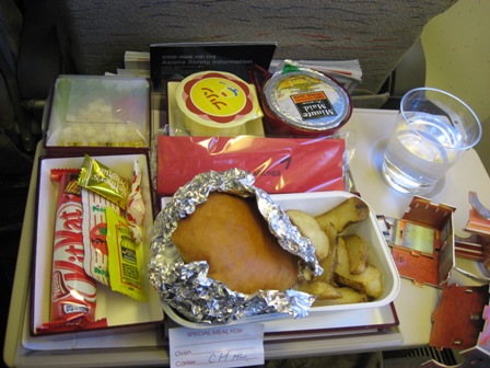 機内食のチャイルドミール。行きはハンバーガー。肉かたい。