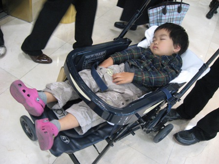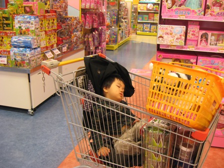 かなーり連れ回してるもんね、疲れたよねえ。でも母ちゃん、買い物を止めないわ!